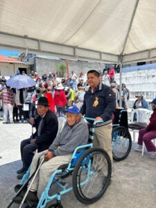 Visitamos la parroquia de Cutuglagua, cantón Mejía, en donde pudimos realizar la entrega de varias ayudas técnicas como, una brigada visual gratuita de lentes de lectura. Por otro lado, audífonos para mejorar la audición de los pacientes, bastones de apoyo y sillas de ruedas para una movilidad digna.